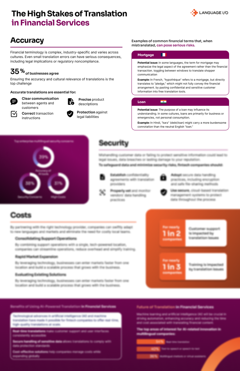 Financial terminology is complex, industry-specific and varies across cultures. Even small translation errors can have serious consequences, including legal implications or regulatory noncompliance.