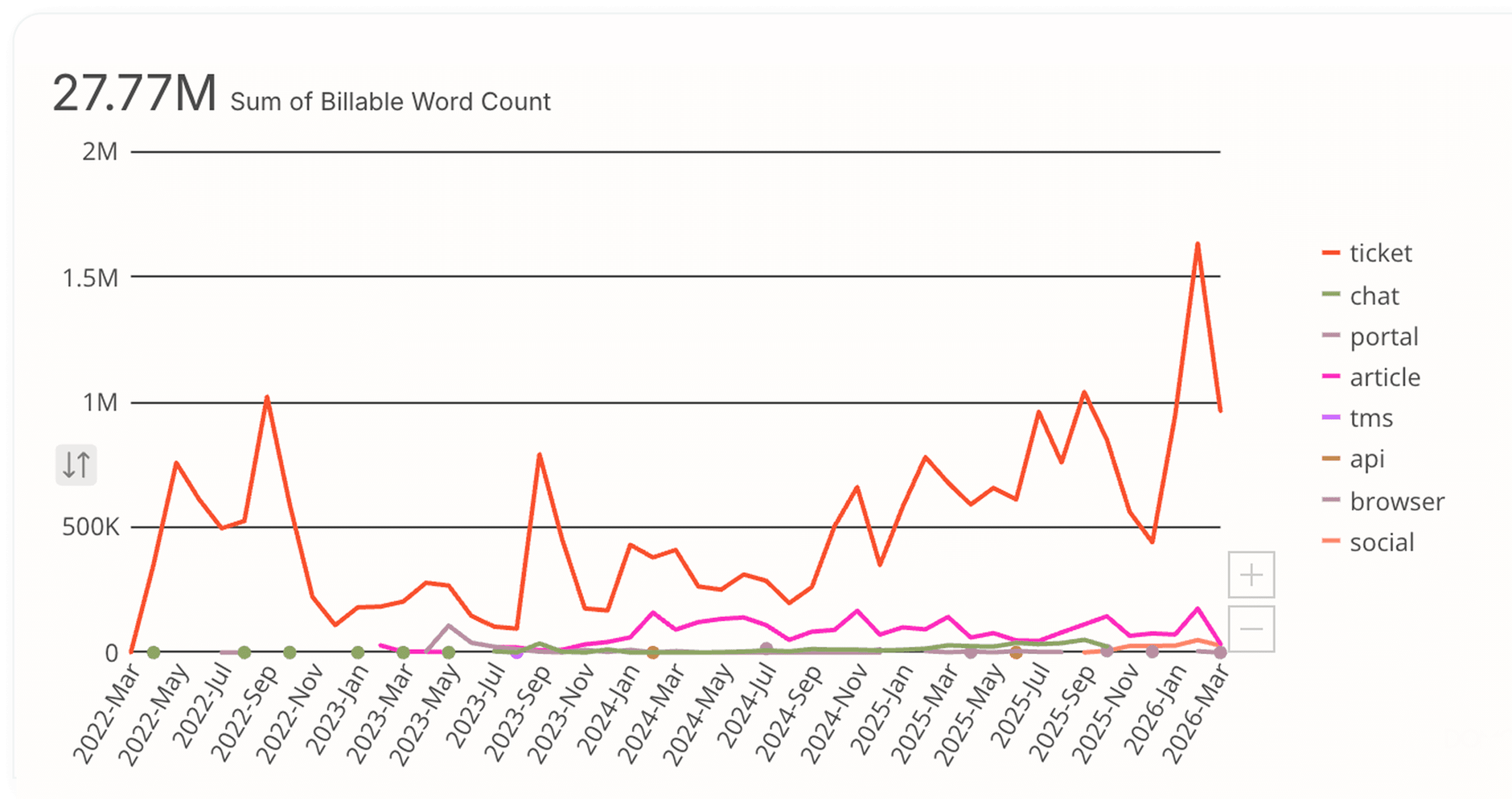 Words translated by channel / by month