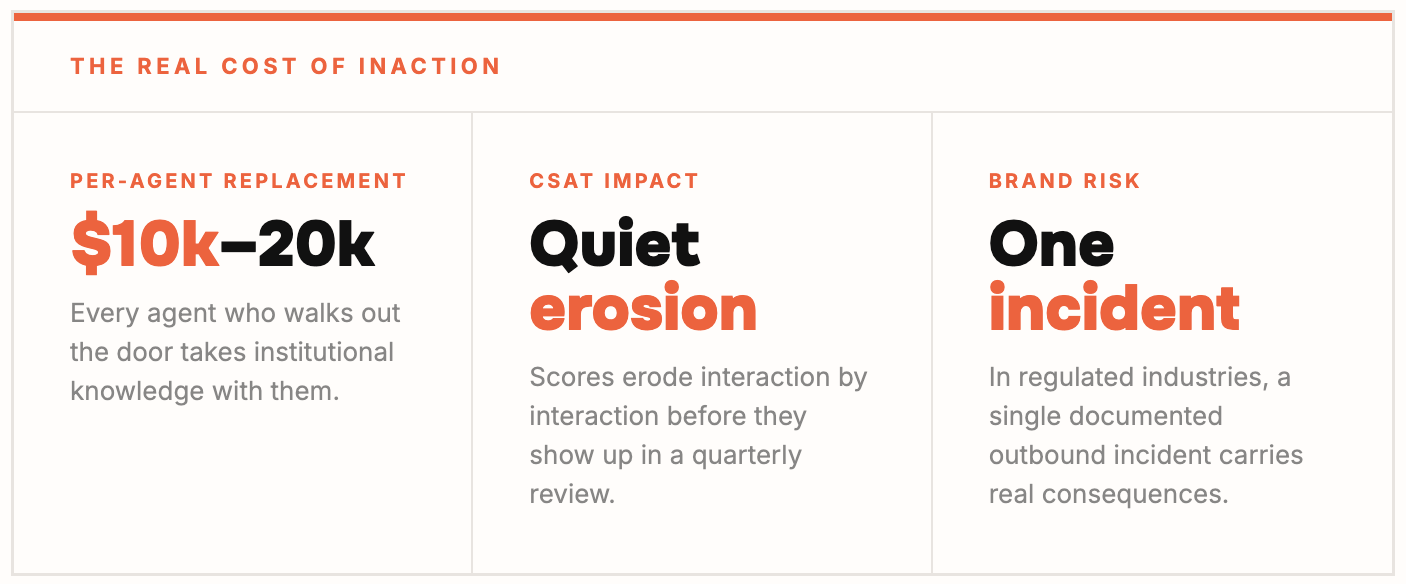 Agent burnout isn’t a people problem. It’s a P&L problem and it’s hiding in plain-sight across your turnover costs, satisfaction scores, and the calls that close clean but shouldn’t have. This is what it actually costs when the infrastructure protecting your agents hasn’t kept pace with what they are being asked to absorb.