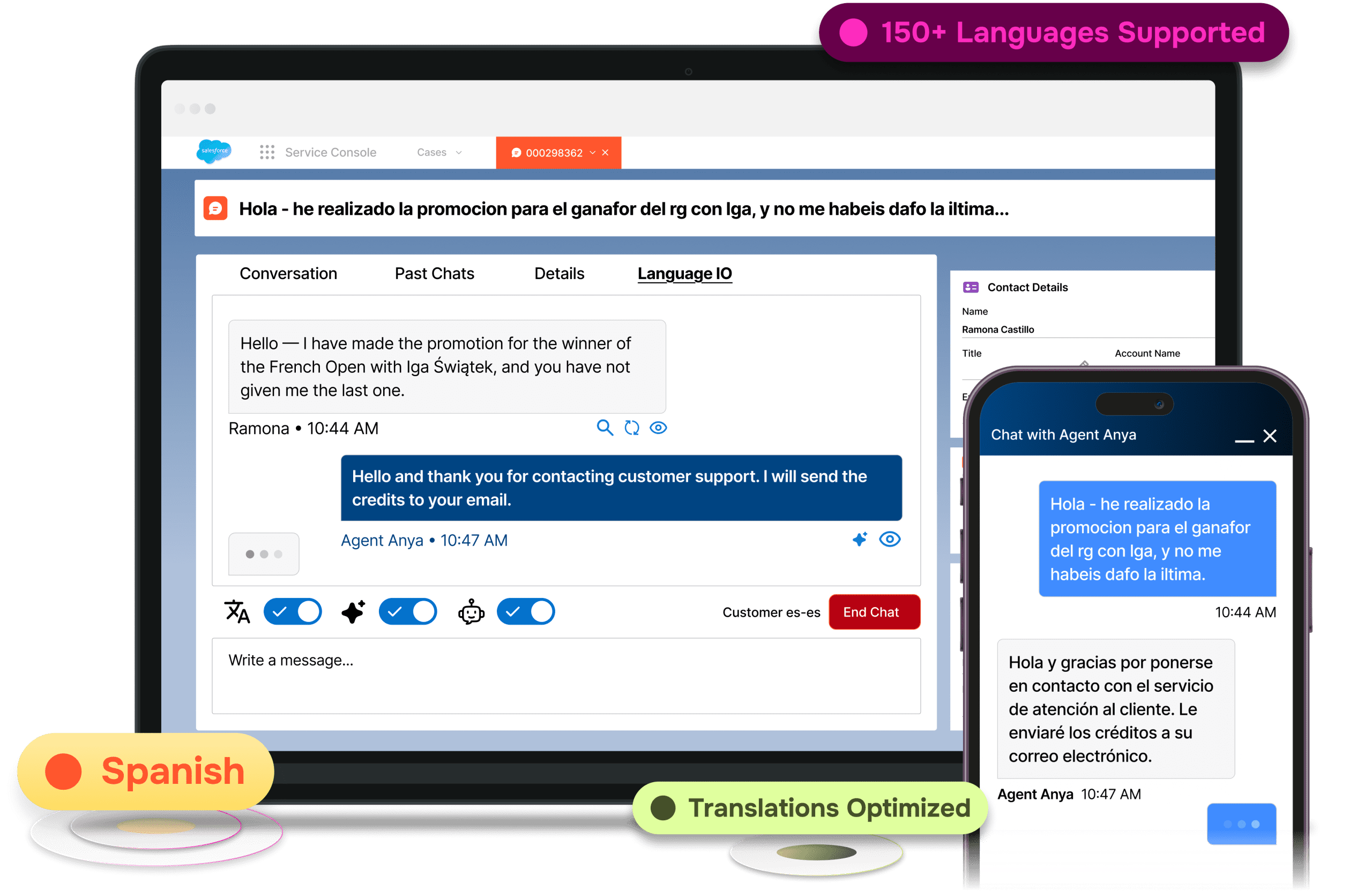 Language IO’s technology empowers agents to effortlessly respond to queries in any language, ensuring your customers get back to their favorite TV shows, music, or sports without delay.
